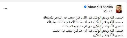 وعبر أحمد الشيخ عن مشاعره في منشوره الذي نشره على موقع التواصل الاجتماعي فيبسوك قائلاً: