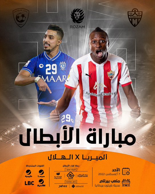 أعلن تركي آل الشيخ مالك نادي ألميريا الإسباني ورئيس الهيئة العامة للترفيه في المملكة العربية السعودية، عن إقامة مباراة ودية بين نادي الهلال السعودي وألميريا في بريطانيا.