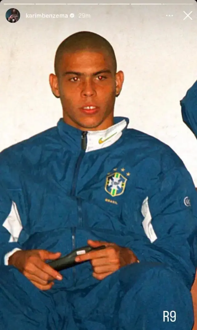 حيث نشر بنزيما صورة للأسطورة البرازيلية رونالدو عبر خاصية “ستوري”، مع تعليق بسيط يحمل اسم (R9)، مما يدل بوضوح على دعمه للظاهرة بدلاً من النجم البرتغالي، ومن المعروف أن الاسم التجاري لرونالدو البرتغالي هو (CR7).