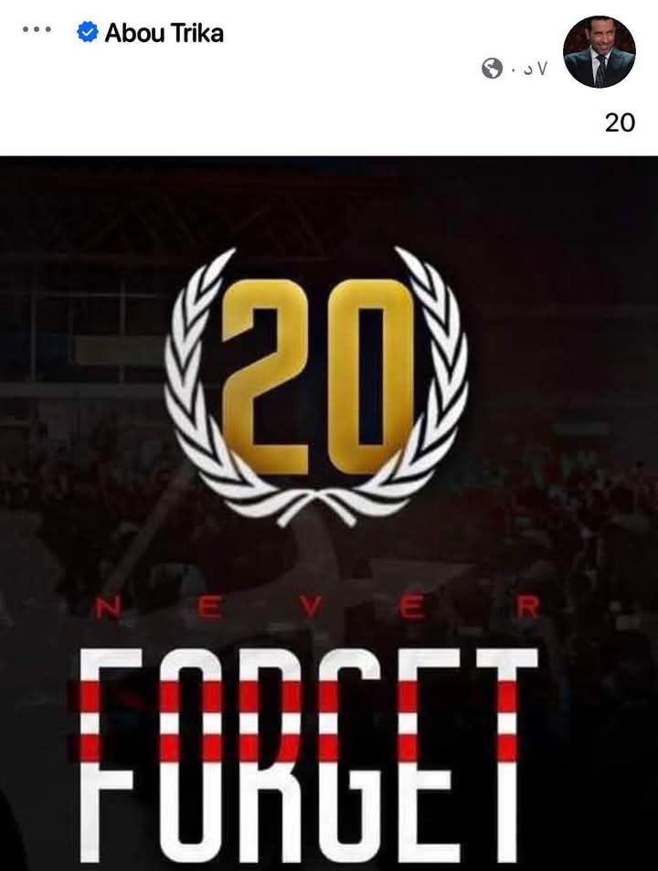 وعبر صفحته الرسمية على “فيسبوك”، أحيا أبو تريكة ذكرى ضحايا أحداث “الدفاع الجوي” الذين فقدوا حياتهم أثناء مباراة الزمالك وإنبي في موسم 2015 بالدوري المصري، حيث نشر صورة تحمل رقم “20” وعبارة تصدر عن قلبه تقول: “لن ننساكم”، ومنذ ذلك الحين يقوم محبو الكرة المصرية بشكل عام بإحياء ذكرى الضحايا سنوياً، ولم تُسجل أي مباراة بين جماهير الأهلي والزمالك انتهت دون أن يتم تكريم ذاكرتهم بواسطة إضاءة الهواتف المحمولة في لحظة أخاذة تستغرق دقيقة واحدة فقط.