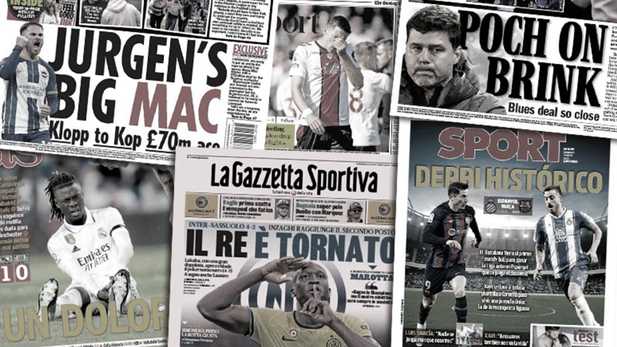 ونشرت الصحيفة البريطانية عن هزيمة أرسنال 3/0 أمام برايتون، وفوز مانشستر سيتي 3/0 أمام إيفرتون وكتبت: “نصف لقب الدوري الإنجليزي الممتاز في جيب فريق بيب جوارديولا”، كما أهتمت الصحيفة برفض جود بيلينجهام فكرة الانتقال لصفوف مانشستر سيتي حيث يرغب في الرحيل لصفوف ريال مدريد وكتبت: “بيلينجهام يرفض مانشستر سيتي”.