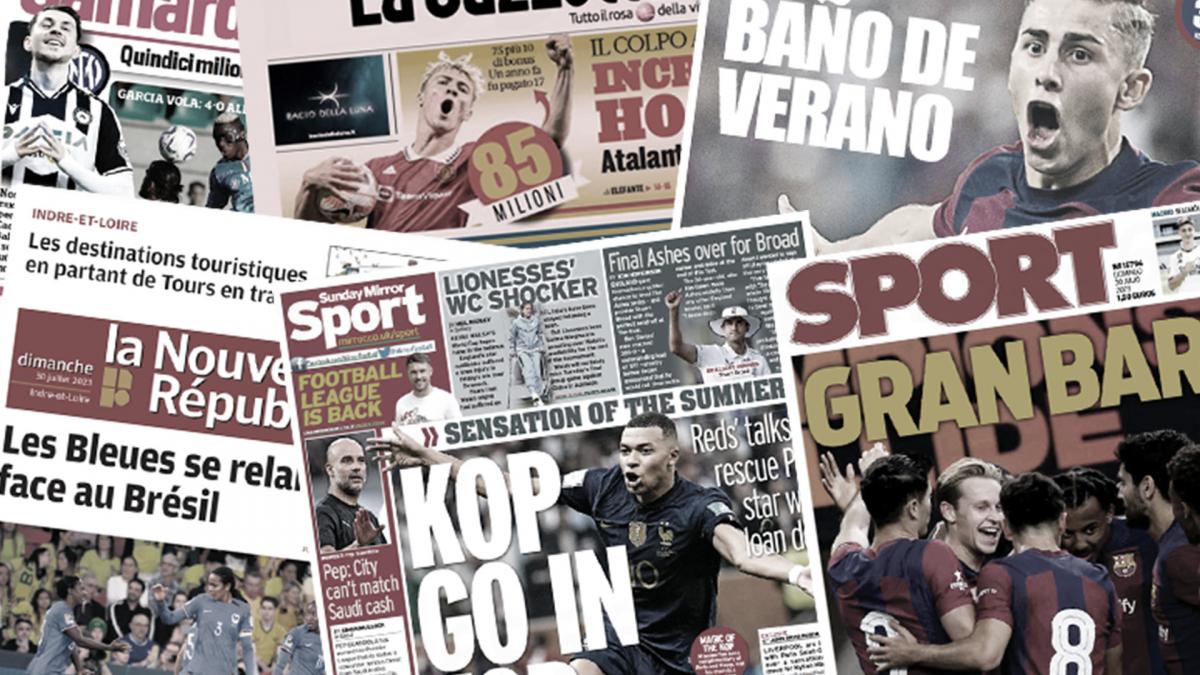 سلطت الصحف الرياضية العالمية اليوم الأحد 30 يوليو 2023 الضوء عن نادي باريس سان جيرمان الذي يدرس كسر قيمة الشرط الجزائي في عقد عثمان ديمبلي مع برشلونة، كما أعلن نادي ريال مدريد عن إصابة اللاعب التركي أردا جولر في الغضروف المفصلي بالركبة اليمنى، ومانشستر يونايتد يرفض عرضًا من وست هام يونايتد مقابل انتقال هاري ماجواير.