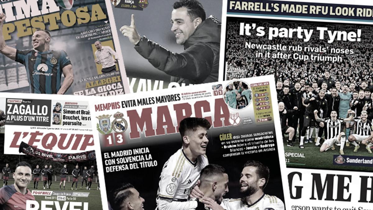 ونشرت الصحيفة الإسبانية عن فوز ريال مدريد 3/1 أمام أراندينا في كأس ملك إسبانيا ومشاركة النجم التركي أردا جولر لأول مرة منذ إنضمامه وكتبت: “مسلسل غياب جولر مع ريال مدريد أنتهي”، كما أهتمت الصحيفة بعرض نادي مانشستر يونايتد الإنجليزي الذي قدم خدمات اللاعب الفرنسي رافاييل فاران على نادي برشلونة وكتبت: “فاران معروض على برشلونة”.