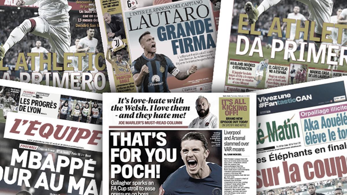سلطت الصحف الرياضية العالمية اليوم الجمعة 9 فبراير الضوء علي مستقبل جول كوندي مدافع فريق برشلونة الإسباني مع الفريق الكتالوني في الصيف القادم، والإتحاد الإنجليزي بسبب سوء السلوك خلال مباراته ضد ليفربول، وجيسي لينجارد لاعب مانشستر يونايتد السابق ينتقل إلى نادي سيول الكوري الجنوبي.