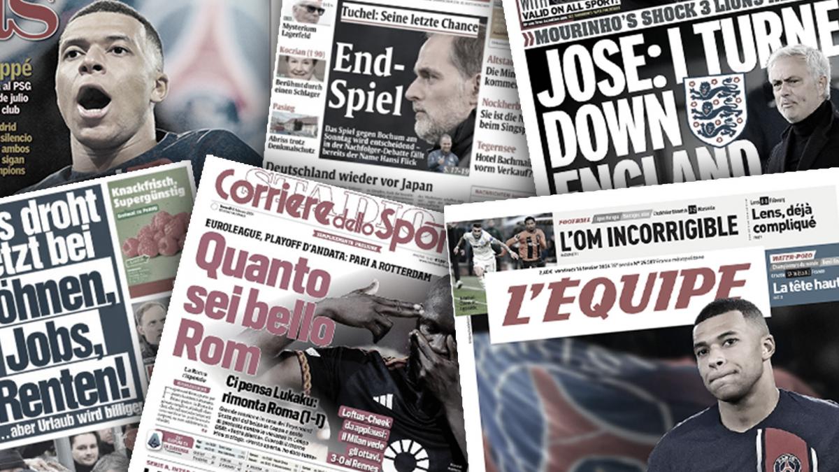 سلطت الصحف الرياضية العالمية اليوم الجمعة 16 فبراير الضوء علي تقارير رحيل مبابي عن باريس سان جيرمان بنهاية الموسم الجاري، وفوز ميلان أمام رين في الدوري الأوروبي، ومشجعو ليفربول يختارون تشابي ألونسو ليكون خليفة ليورجن كلوب.