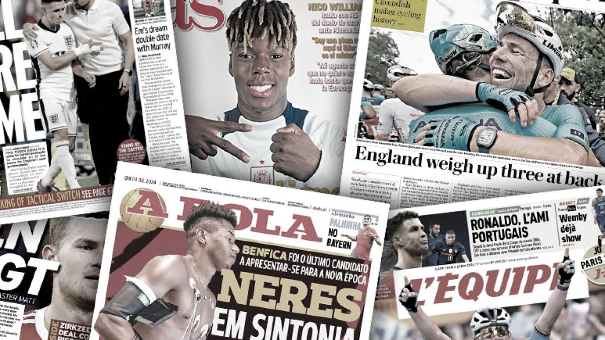 سلطت الصحف الرياضية العالمية اليوم الجمعة 5 يوليو الضوء علي مستقبل جواو فيليكس لاعب برشلونة الذي يواجه صعوبة في البقاء مع فريقه، وواجه النجم جود بيلينجهام انتقادات لاذعة بسبب أدائه غير الجيد في يورو 2024، والمدرب جاريث ساوثجيت المدير الفني لمنتخب إنجلترا يستقر على استخدام خطة جديدة في مواجهة سويسرا بربع نهائي يورو 2024.