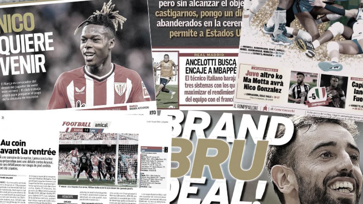 سلطت الصحف الرياضية العالمية اليوم الأثنين 12 أغسطس الضوء علي وصول المهاجم الأرجنتيني جوليان ألفاريز إلى مدينة مدريد الإسبانية للتوقيع إلى نادي أتليتيكو مدريد، وبرشلونة مازال مقتنعًا على قدرته بضم نيكو ويليامز خلال فترة الانتقالات الجارية، وريال مدريد وبرشلونة يراقبون موقف ترينت ألكسندر أرنولد.