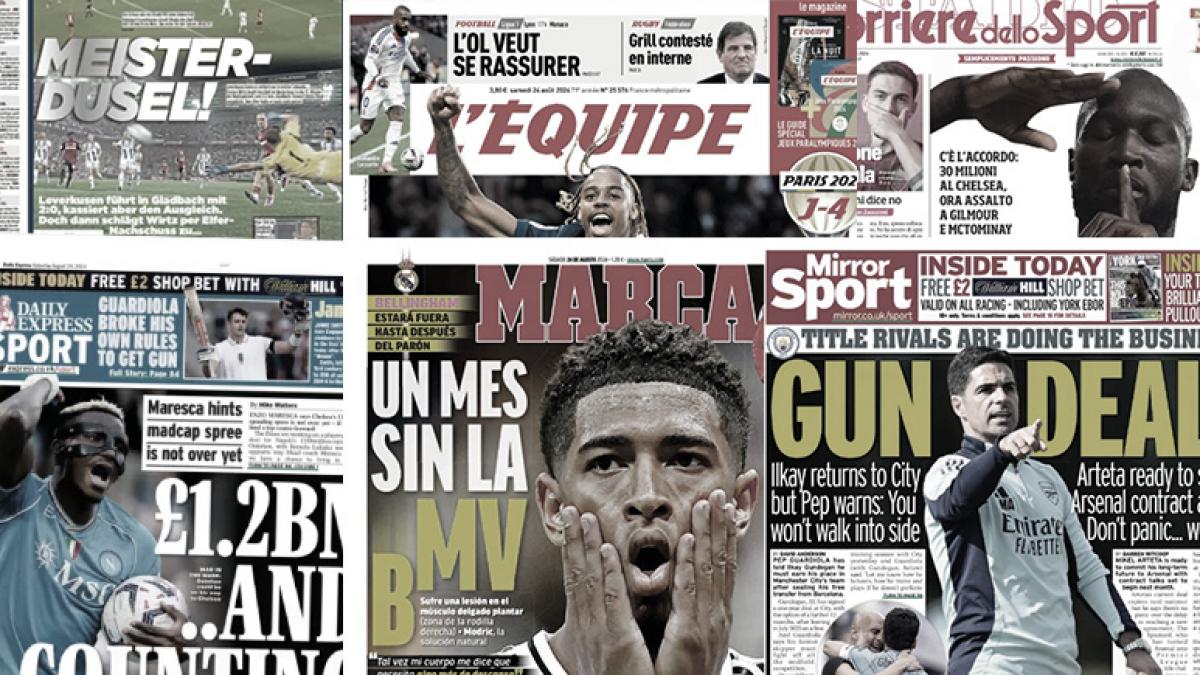 سلطت الصحف الرياضية العالمية اليوم الأثنين 26 أغسطس الضوء علي فوز ريال مدريد علي بلد الوليد في الدوري الإسباني، وجريزمان يقود أتلتيكو مدريد بالفوز علي جيرونا بالليجا، وتشيلسي يسعي للدخول في صفقة تبادلية مع مانشستر يونايتد بين جادون سانشو ورحيم سترلينج او بن تشيلوال.