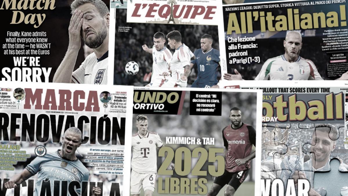 ونشرت الصحيفة الفرنسية عن النجم أدريان رابيو لاعب وسط نادي يوفنتوس الإيطالي الذي يمتلك عرضين على الرغم من انتهاء فترة القيد في الدوريات الخمس الكبرى وكتبت: “عرضان لرابيو”، كما أهتمت الصحيفة بالمدرب ديديه ديشامب المدير الفني لمنتخب فرنسا الذي أعلن أنه يتحمل مسؤولية خسارة الديوك الثقيلة أمام إيطاليا وكتبت: “مسؤولية ديشامب”.