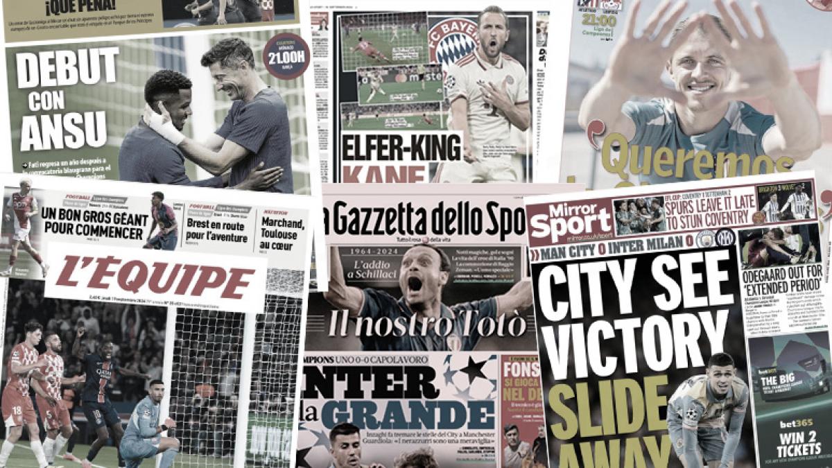 سلطت الصحف الرياضية العالمية اليوم الخميس 19 سبتمبر الضوء علي مباراة اليوم بين برشلونة وموناكو بدوري أبطال أوروبا، وباريس سان جيرمان يفوز على جيرونا، ومانشستر سيتي يتعادل أمام إنتر ميلان بدوري الأبطال، ومايكل أرتيتا مدرب أرسنال محبطًا أثناء حديثه عن إصابة النرويجي مارتن أوديجارد.