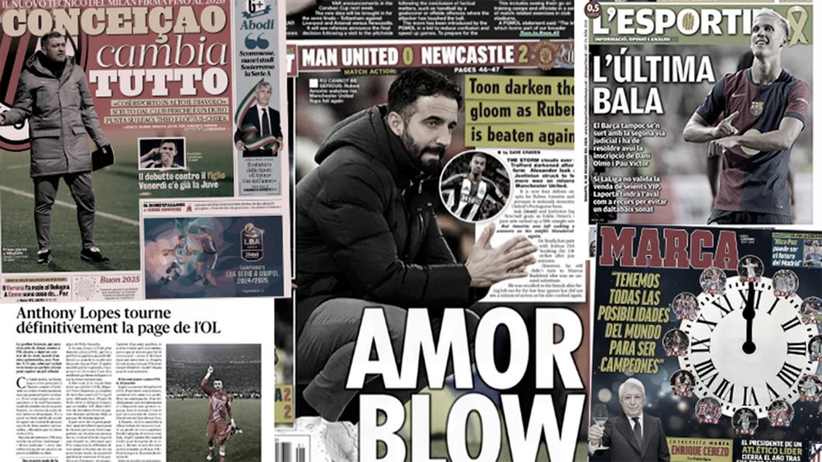 ونشرت الصحيفة البريطانية عن خسارة مانشستر يونايتد 2/0 أمام نيوكاسل في الدوري الإنجليزي،والمدرب اموريم يعترف ان فريقه يخوض معركة الهبوط وكتبت: ” المزيد من البؤس.. مانشستر يونايتد 0-2 نيوكاسل”، كما أهتمت الصحيفة بخسارة أيضاً تشيلسي 2/0 أمام إيبسويتش تاون في مباراة جمعتهما على ملعب بورتمان رود وكتبت: “تشيلسي ينهي سنة 2024 بالمركز الخامس”.