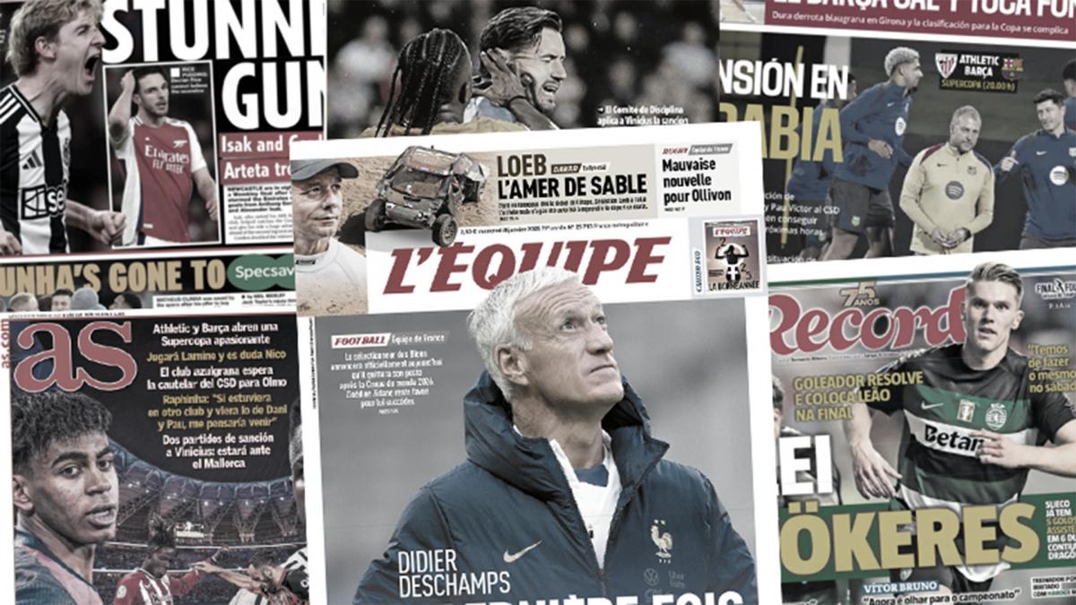 سلطت الصحف الرياضية العالمية اليوم الأربعاء 8 يناير الضوء علي وصول نادي ريال مدريد إلي جدة من أجل السوبر الإسباني، وبرشلونة سيواجه اليوم أتلتيك بلباو في نصف نهائي السوبر الإسباني، ونادي مانشستر يونايتد يرغب في تجديد عقد كوبي ماينو، ونادي ميلان يسعي للتعاقد مع ماركوس راشفورد.