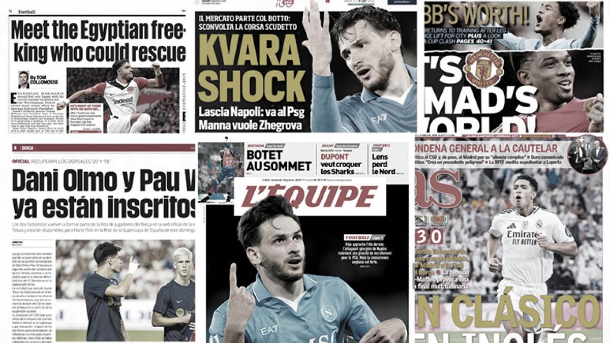 سلطت الصحف الرياضية العالمية اليوم السبت 11 يناير الضوء علي نادي برشلونة الذي يريد تدعيم صفوفه بالحصول على راشفورد مهاجم مانشستر يونايتد على سبيل الإعارة، وكارلو أنشيلوتي مدرب ريال مدريد سيتمكن من استخدام جميع لاعبيه في نهائي كأس السوبر الإسباني، وآرسنال ينسحب من سباق التعاقد مع ألكسندر إيزاك لاعب فريق نيوكاسل.