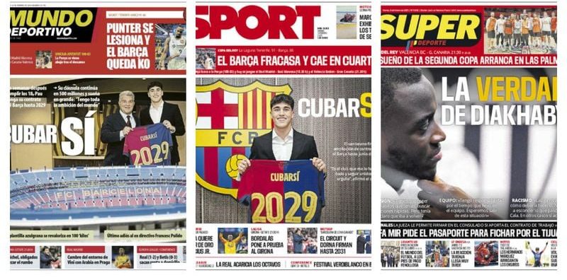ونشرت الصحيفة الإسبانية عن نادي برشلونة الذي أعلن عن تجديد عقد مدافعه الشاب باو كوبارسي حتى 2029 وكتبت: “تجديد عقد كوبارسي مع برشلونة”، كما أهتمت الصحيفة بالنجم البرازيلي نيمار دا سيلفا الذي لا يزال يرغب في العودة إلى برشلونة وكتبت: “نيمار يرغب في العودة لبرشلونة”.