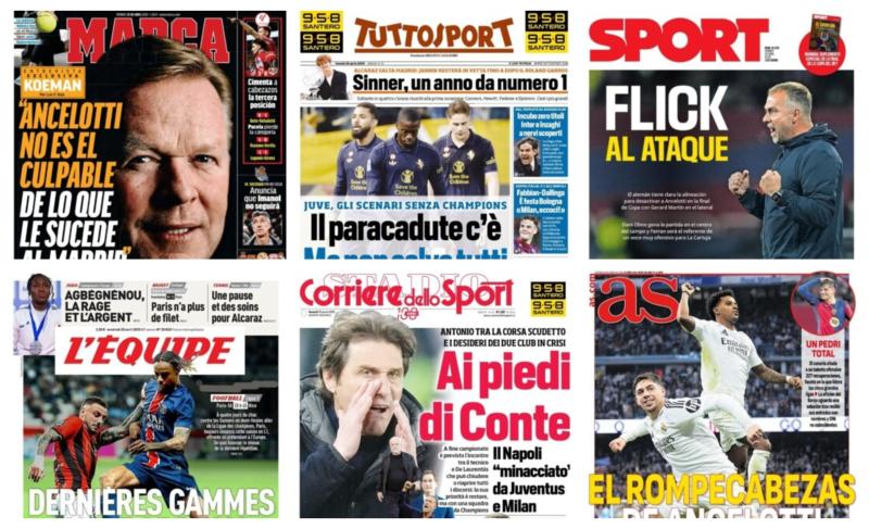 أبرز عناوين أغلفة الصحف الرياضية العالمية: “أنشيلوتي ليس مسؤولاً عما يحدث في مدريد”