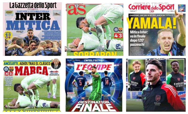 أبرز عناوين أغلفة الصحف الرياضية العالمية: “الإنتر 4-3 برشلونة.. دقيقتان متبقيتان”