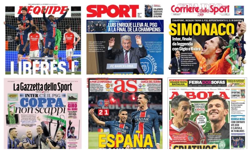 سلطت الصحف الرياضية العالمية اليوم الخميس 8 مايو الضوء علي تأهل باريس سان جيرمان إلي نهائي دوري أبطال أوروبا علي حساب أرسنال، وألكسندر أرنولد يقترب من الإنضمام إلي ريال مدريد ليشارك معهم في كأس العالم للأندية، وخوان لابورتا رئيس نادي برشلونة يتهم حكام مباراة إنتر ميلان بالتسبب في خروج ناديه من دوري أبطال أوروبا.