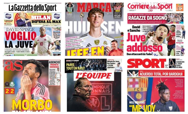 سلطت الصحف الرياضية العالمية اليوم الأربعاء 25 يونيو 2025 الضوء علي اللاعب دين هويسين المنضم حديثاً لنادي ريال مدريد وتألقه مع الفريق بمونديال الأندية، وريال مدريد يقرر تخفيض سعر لاعبه البرازيلي رودريجو، والجزائري ريان آيت نوري عبر عن سعادته البالغة بالانضمام إلى مانشستر سيتي.