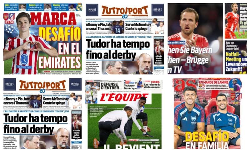 أبرز عناوين أغلفة الصحف الرياضية العالمية: “ديربي عائلي ساخن بين أتلتيكو مدريد وأرسنال”