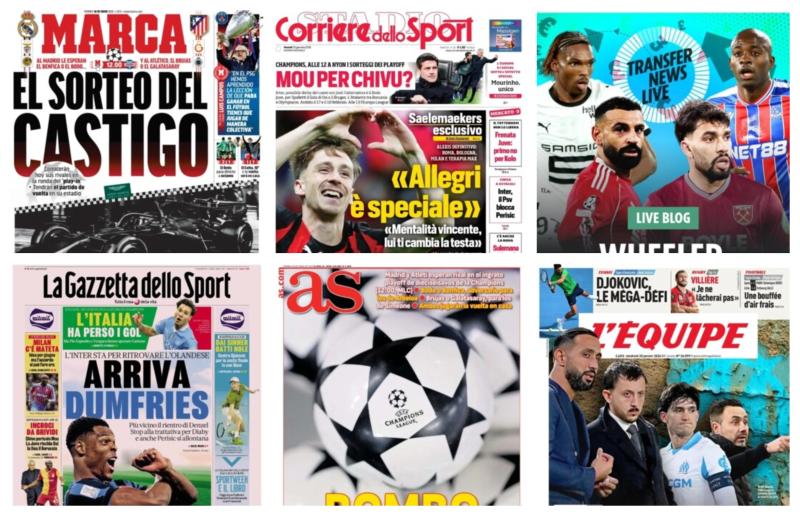 قرعة العقاب: وصفت الصحيفة القرعة بهذا الاسم نظراً للمسار الصعب، حيث قد يواجه ريال مدريد بنفيكا أو بودو، بينما ينتظر أتلتيكو مدريد مواجهة محتملة ضد غلطة سراي أو بروج.