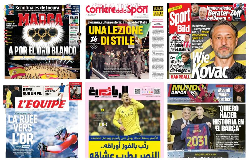شهدت الساحة الرياضية العالمية صباح اليوم السبت، 7 فبراير 2026، حراكاً كبيراً وتغطيات واسعة من كبرى الصحف الرياضية، التي تنوعت بين الصفقات الجديدة في الدوري الإسباني، وانطلاق المحافل الدولية الكبرى في إيطاليا، وصولاً إلى صراعات الدوري الإنجليزي وإثارة الدوري السعودي للمحترفين.