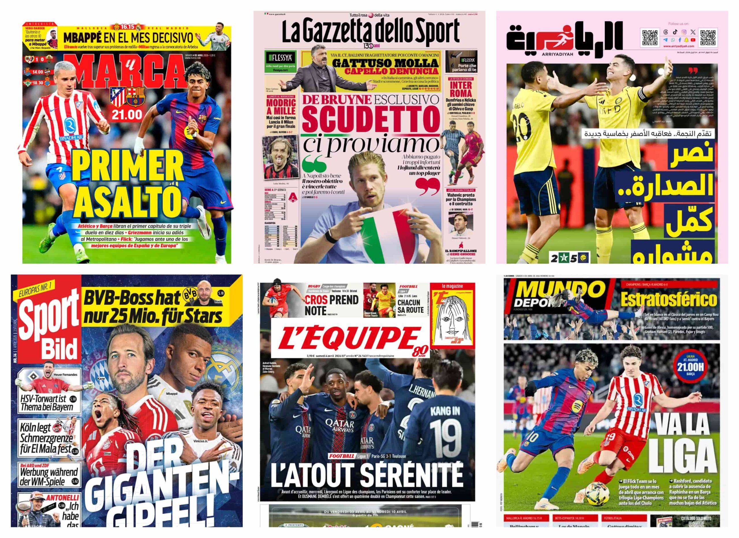 أبرز عناوين أغلفة الصحف الرياضية العالمية: “كلاسيكو مصغر في “متروبوليتانو” ومهمة ملكية في مايوركا”