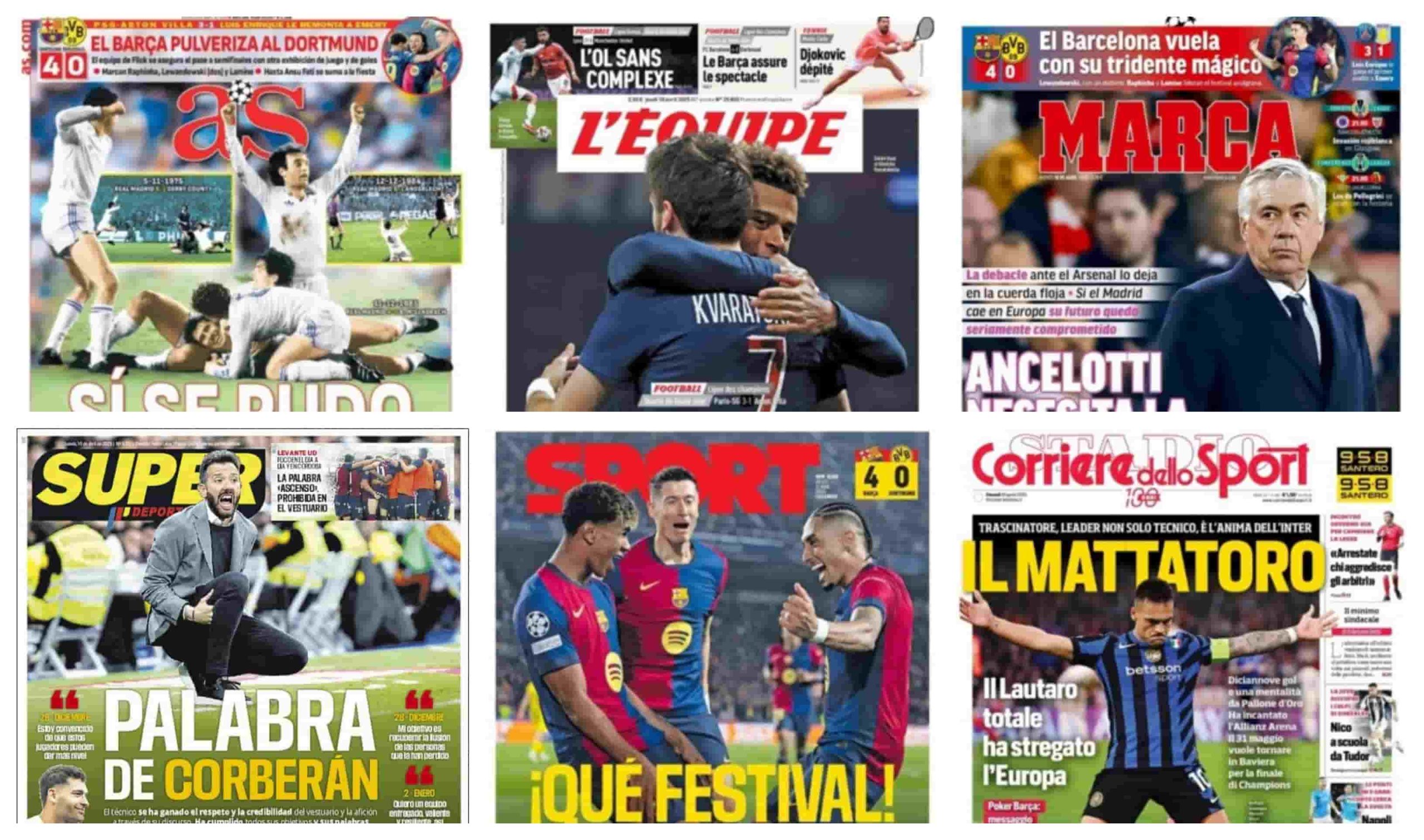 ونشرت الصحيفة الإسبانية عن إنهيار ريال مدريد أمام أرسنال وجعله في وضع حرج وكتبت: “أنشيلوتي يحتاج الى ريمونتادا”، كما أهتمت الصحيفة بفوز نادي برشلونة 4/0 أمام بوروسيا دورتموند في ذهاب ربع نهائي دوري أبطال أوروبا وكتبت: “برشلونة يحقق فوز سحري على دورتموند 4-0”.
