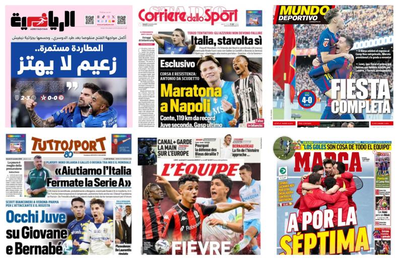 أبرز عناوين أغلفة الصحف العالمية: “احتفال برشلونة بفوزه الكبير 4-0 على أتلتيك بلباو”