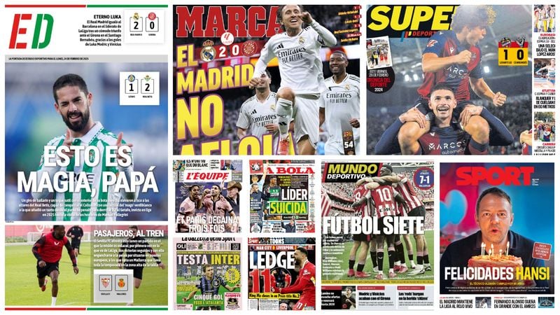 سلطت الصحف الرياضية العالمية اليوم الأثنين 24 فبراير الضوء علي فوز ريال مدريد علي جيرونا في الدوري الإسباني، وليفربول يفوز علي مانشستر سيتي في الدوري الإنجليزي، وباريس سان جيرمان يفوز بصعوبة علي ليون بالدوري الفرنسي.