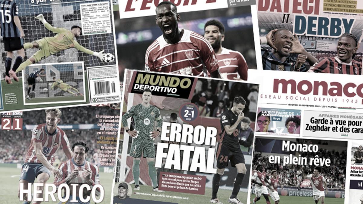 أبرز عناوين أغلفة الصحف العالمية: “برشلونة 1-2 موناكو.. تير شتيجن يدمر برشلونة”