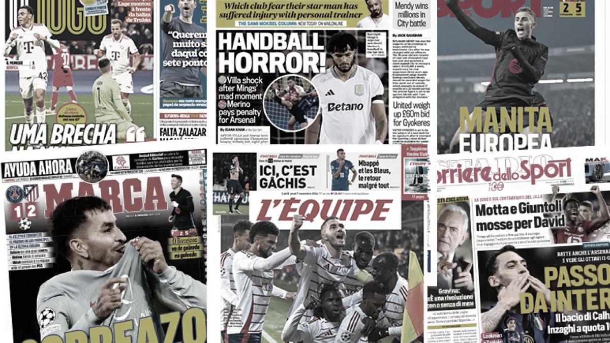 سلطت الصحف الرياضية العالمية اليوم الخميس 7 نوفمبر الضوء علي فوز برشلونة علي سرفينا زفيزدا، وأتلتيكو يخطف فوز ثمين أمام باريس سان جيرمان بدوري الأبطال، والمدرب مايكل اريتيا المدير الفني للأرسنال فخور بالرغم من الخسارة امام إنتر ميلان بدوري الأبطال.