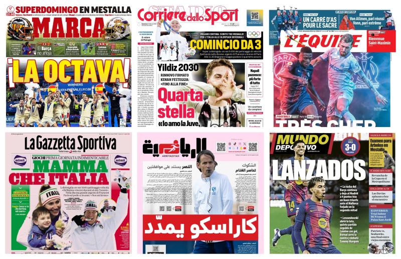 شهدت الصحف الرياضية العالمية صباح اليوم الأحد، 8 فبراير 2026، حراكاً كبيراً وتغطيات واسعة من كبرى الصحف الرياضية، التي تنوعت بين انتصارات برشلونة الكاسحة، وهيمنة آرسنال التاريخية في إنجلترا، وصولاً إلى أجواء “الكلاسيكو” المشتعلة في فرنسا، وانطلاق المحافل الأولمبية في إيطاليا.