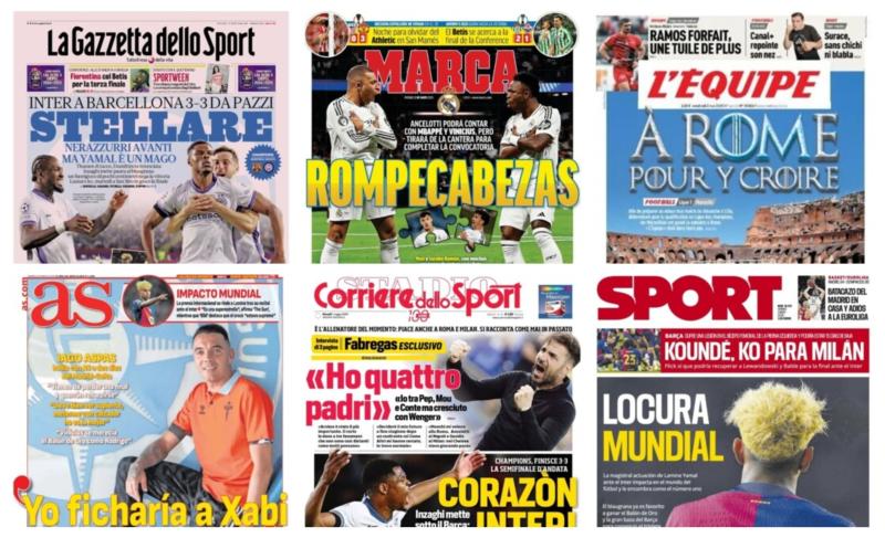 ونشرت الصحيفة الإسبانية عن جاهزية فينسيوس ومبابي في المباراة القادمة لنادي ريال مدريد أمام سيلتا فيغو بالدوري الإسباني وكتبت: “سيتمكن انشيلوتي من الاعتماد على مبابي و​فينيسيوس”، كما أهتمت الصحيفة بالمدرب بيب جوارديولا المدير الفني لمانشستر سيتي الذي أعرب عن فخره بالأداء الذي قدمه برشلونة أمام إنتر ميلان في نصف نهائي دوري أبطال أوروبا. وكتبت: “جوارديولا يفتخر ببرشلونة”.