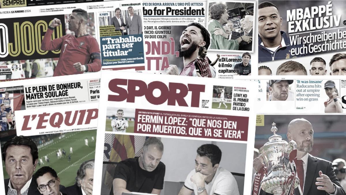 سلطت الصحف الرياضية العالمية اليوم الأربعاء 12 يونيو الضوء علي تصريحات كارفخال حول بطولة كأس الأمم الأوروبية يورو 2024، ونادي مانشستر يونايتد يرغب في ضم مهاجم جديد هذا الصيف، وإيريك تين هاج سيبقى في مانشستر يونايتد، ولامين يامال يكمل واجباته الدراسية وهو في معسكر منتخب إسبانيا.