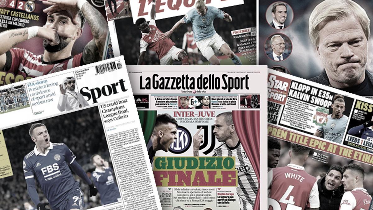 سلطت الصحف الرياضية العالمية اليوم الأربعاء 26 إبريل الضوء عن خسارة ريال مدريد أمام جيرونا في الدوري الإسباني، وأهم مباريات اليوم مثل برشلونة أمام رايو فاليكانو، ومانشستر سيتي أمام أرسنال، وليفربول أمام وست هام، ومباراة إنتر ميلان أمام يوفنتوس بكأس إيطاليا.