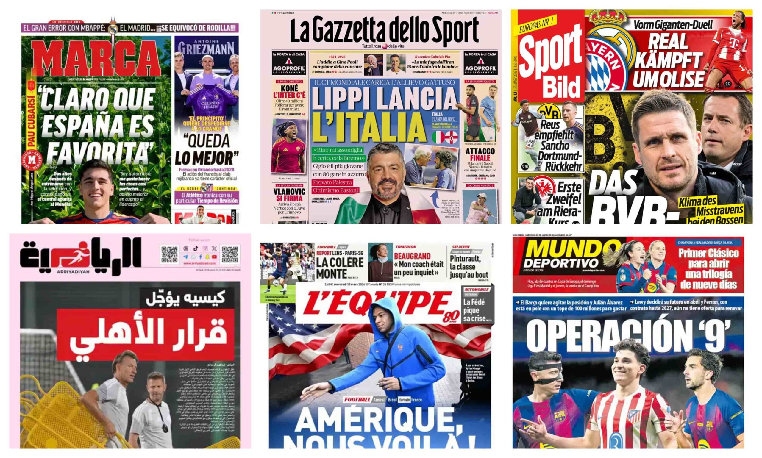 سيطرت أغلفة الصحف الرياضية العالمية اليوم الأربعاء 25 مارس على الإعلان الرسمي للنجم المصري محمد صلاح عن رحيله بنهاية الموسم، تزامناً مع تحركات كبرى في سوق الانتقالات وتحضيرات المنتخبات الوطنية لمواجهات العيار الثقيل، لتعلن كرة القدم الأوروبية عن بداية مرحلة انتقالية كبرى.