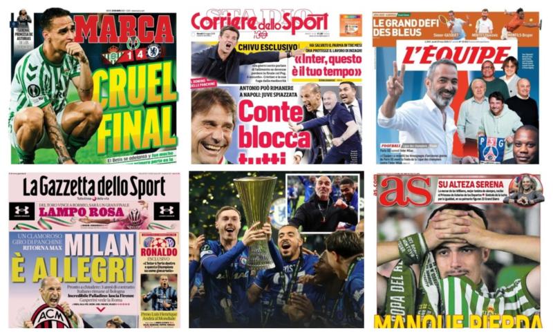 سلطت الصحف الرياضية العالمية اليوم الخميس 29 مايو 2025 الضوء علي فوز نادي تشيلسي ببطولة دوري المؤتمر الأوروبي علي حساب ريال بيتيس، وبرشلونة يسعي للتعاقد مع الحارس خوان جارسيا، لاعب فريق إسبانيول، وميلان يقدم عرض أولي إلى ماسيميليانو أليجري لتدريب الفريق في الموسم المقبل