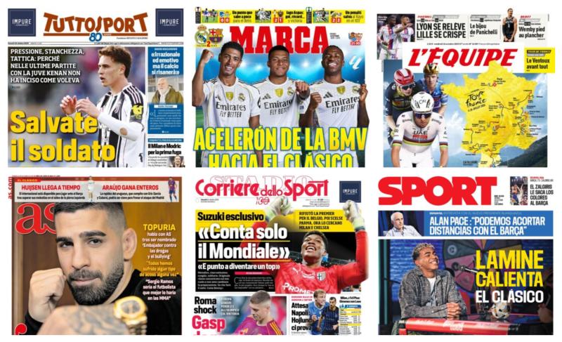 أستعرضت الصحف الرياضية العالمية الصادرة صباح الجمعة 24 أكتوبر 2025 أبرز الأخبار والأحداث التي تشغل الساحة الرياضية الأوروبية والعالمية، حيث حملت الأخبار مفاجآت كبيرة وتطورات مهمة في عدة بطولات كبرى مثل الدوري الإيطالي والإسباني، إلى جانب تفاصيل بارزة من عالم الرياضة المختلفة.