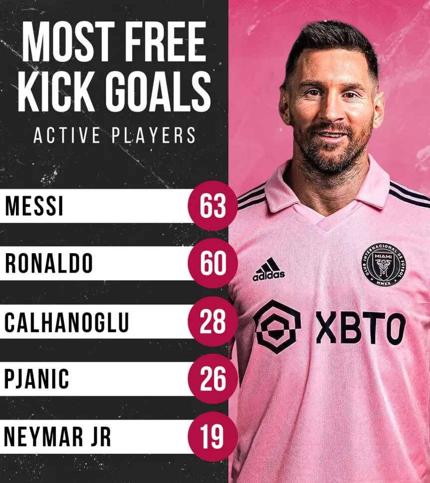 وقد تفوق ليونيل ميسي على الراحل دييجو مارادونا الذي سجل 62 هدفاً في الركلات الحرة عندما سجل الركلة الأخيرة في أول ظهور له مع إنتر ميامي، حيث أعد لها إعدادًا مثاليًا بالنسبة له مع اللحظة الأخيرة من الوقت الإضافي، كما كسر ميسي سلسلة هزائم إنتر ميامي في 11 مباراة متتالية، ويتبقي للنجم الأرجنتيني هدفين فقط من الركلات الحرة ليقتحم المراكز الثلاثة الأولى عبر التاريخ.