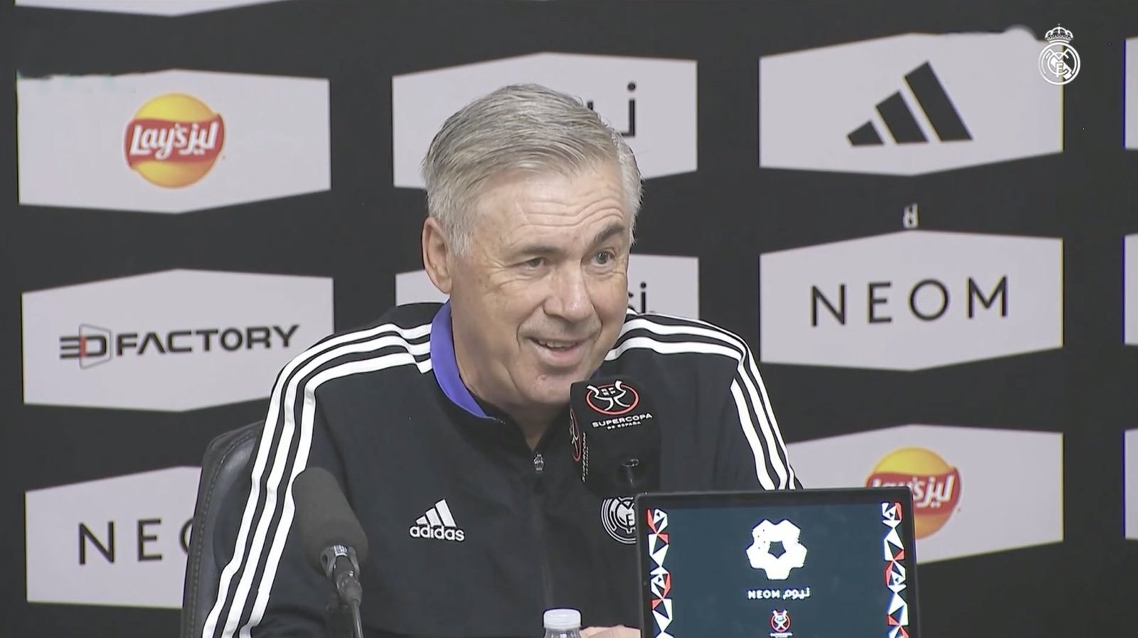 تحدث المدرب الإيطالي “كارلو أنشيلوتي” المدير الفني لنادي ريال مدريد خلال المؤتمر الصحفي الخاص بمواجهة برشلونة والمقرر إقامتها غداً الأحد في نهائي كأس السوبر الإسباني 2023.
