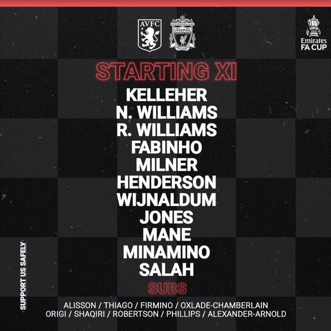 أعلن المدير الفني للفريق الأول لكرة القدم بنادي ليفربول “يورجن كلوب” عن تشكيل اللاعبين لمواجهة أستون فيلا في منافسات الدور 3 من كأس الإتحاد الإنجليزي وستلعب المباراة في تمام الساعة 10:45 مساء بتوقيت مكة المكرمة.