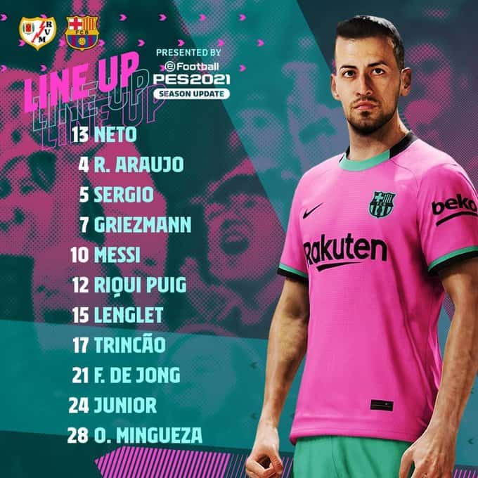 أعلن المدرب الهولندي “رونالد كومان” المدير الفني لنادي برشلونة عن التشكيل الرسمي لمواجهه رايو فاليكانو والتي ستبدأ في تمام الساعة 11:00 مساء بتوقيت مكة المكرمة في إطار مباريات دور الـ16 من عمر مسابقة كأس ملك إسبانيا.