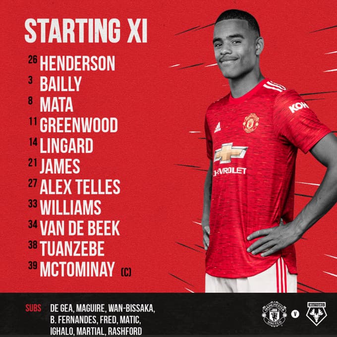 أعلن المدرب النرويجي “أولي جونار سولسكاير” المدير الفني لمانشستر يونايتد عن التشكيل الأساسي لمواجهة واتفورد على ملعب “أولد ترافورد” والتي ستنطلق بعد قليل في تمام الساعة 11:00 مسًاء بتوقيت مكة المكرمة في إطار مباريات الدور الثالث من كأس الإتحاد الإنجليزي.