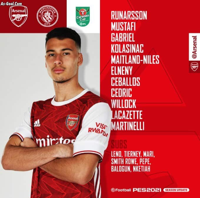 التشكيل الرسمي لقمة كأس الرابطة الإنجليزية بين أرسنال ومانشستر سيتي