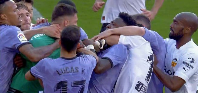وكانت قد هتفت جماهير فالنسيا كثيرًا ضد فينيسيوس، ووصفته بالقرد قبل تورطه في شجار مع لاعبي الفريق المنافس ليطرد بالبطاقة الحمراء المباشرة، بعد ضربه أحد لاعبي فالنسيا في الدقيقة 98 من المباراة
