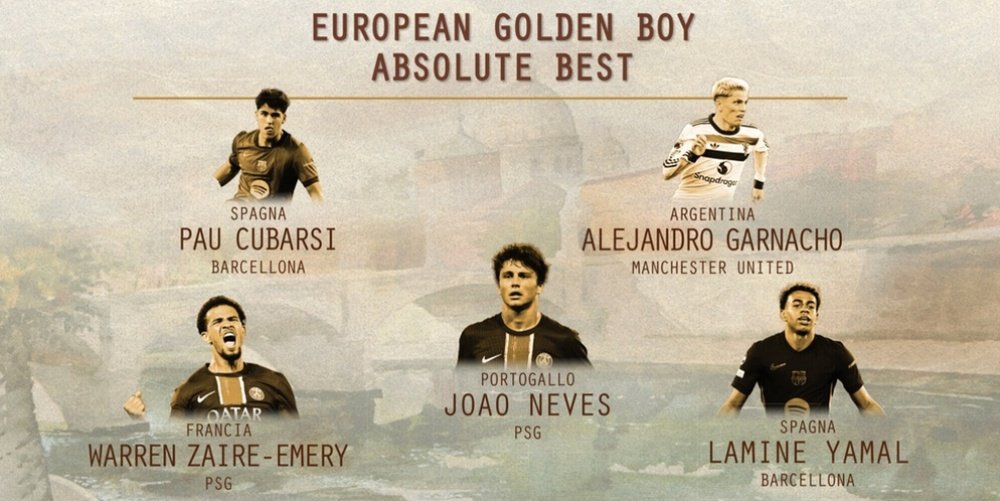كشفت صحيفة “توتو سبورت” الإيطالية اليوم الجمعة عن القائمة النهائية المكونة من 25 لاعبًا لجائزة الفتى الذهبي لعام 2024، حيث تُمنح الجائزة لأفضل لاعب تحت 21 عامًا كل موسم من قبل الصحيفة الإيطالية.