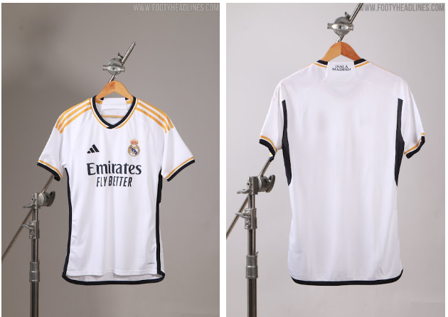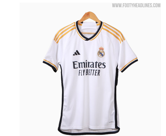 ولكن نشرت شبكة “Footy Headlines” المتخصصة في التطورات المتعلقة بالأطقم الرياضية عن الزي الذي يُعتقد أنه سيكون الأساسي لنادي ريال مدريد في الموسم الجديد 2023/2024، حيث جاء القميص بتصميم حديث وبسيط والأمر الأكثر إثارة هو الجمع بين الأبيض والأسود الداكن، والبرتقالي المائل إلى اللون الذهبي.