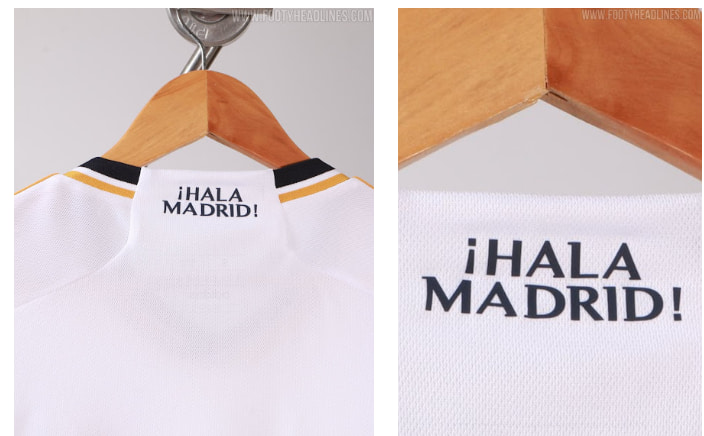 ولأول مرة في تاريخ نادي ريال مدريد جاء قميص ريال مدريد بشعار النادي “هلا مدريد” على الياقة، وتميز القميص الجديد باللون الأبيض الكامل للقميص وخطوط زرقاء وصفراء على الكُم وجانبي وأسفل القميص، وما يميز القميص أن اللون البرتقالي الذهبي ليس أصفرًا نقيًا ولا ذهبيًا معدنيًا ولكن في مكان ما بينهما، كما أن الأزرق الداكن يميل إلى حد ما إلى اللون الأسود.