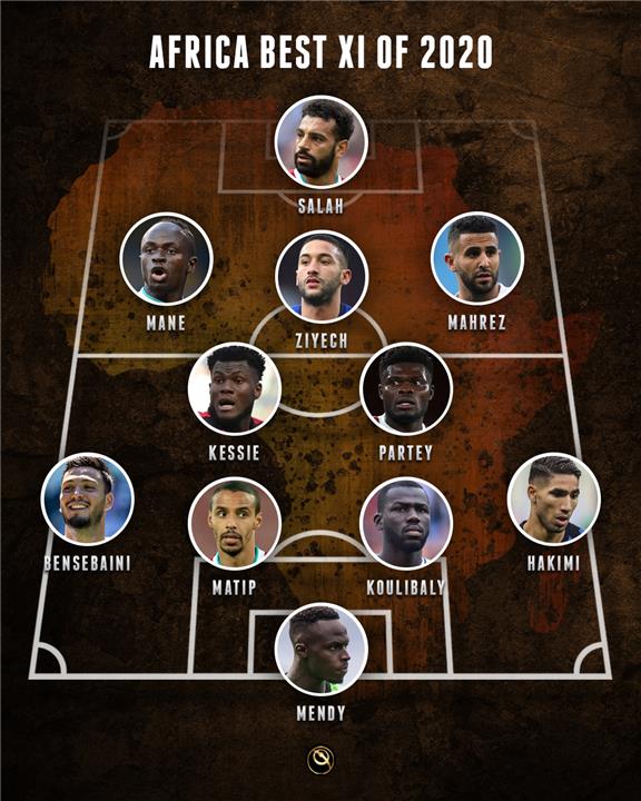 تعرف علي أفضل تشكيلة في إفريقيا لعام 2020.. صلاح بالهجوم