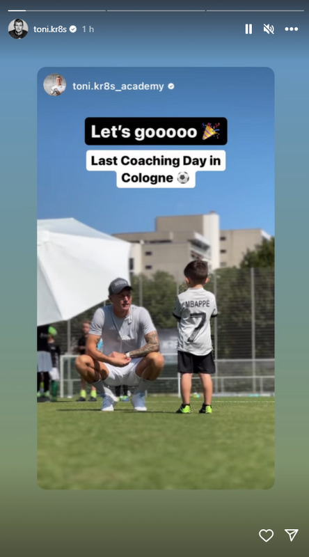 وقد شارك توني كروس صورة على قصصه على إنستجرام تظهر طفلاً يرتدي قميص كيليان مبابي، ولأسباب واضحة انتشر المحتوى على الإنترنت والتي لاقت الكثير من الإعجاب لجماهير الريال وسط موجة من شائعات الإنتقال من جهات مختلفة من الصحافة الدولية، ويقضي النجم الألماني عطلته في مدينة كولونيا الألمانية للمشاركة في العديد من الدورات التدريبية في الأكاديمية التي يديرها في وطنه، ولأسباب واضحة جعل المتابعين المحتوى ينتشر على نطاق واسع.